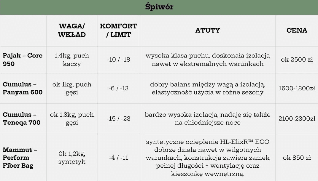 Sprzęt to Twój najlepszy towarzysz w drodze na szczyt – od wygodnych butów po ciepły śpiwór, który zapewni spokojny sen na dużej wysokości. W książce znajdziesz wszystkie praktyczne porady, na co zwrócić uwagę przy wyborze i zakupie ekwipunku, aby nic Cię nie zaskoczyło. Tutaj natomiast przygotowaliśmy listę przykładowych modeli ubrań i sprzętu, które naszym zdaniem warto rozważyć – sprawdzonych, wygodnych i godnych polecenia. Dzięki temu łatwiej znajdziesz rozwiązania dopasowane do własnych potrzeb i budżetu.